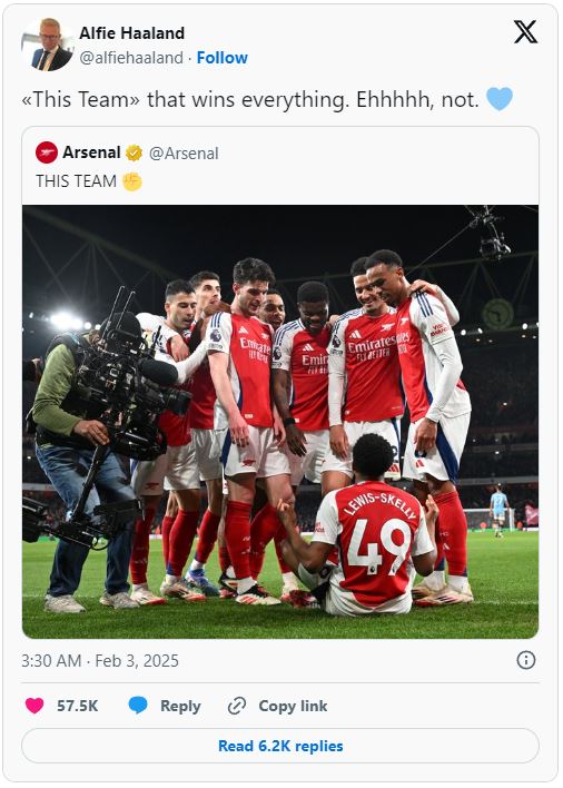 경기 후 전 리버풀 수비수이자 축구 해설가인 제이미 캐러거는 아스널의 경기력을 극찬했다. 그는 "오늘은 아스널이 진정한 우승 후보임을 증명한 날이다. 특히 2-1 이후 경기의 흐름이 완전히 바뀌었고, 맨시티는 이에 대처하지 못했다"고 평가했다.