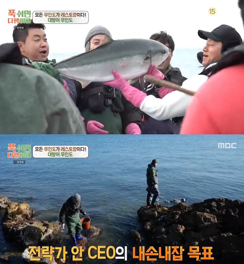 성인 4명이 겨우 들 크기의 대방어를 잡으며 완벽한 호흡을 보인 '푹다행' 팀은 고등어에 참돔까지 마주하며 환호했다.