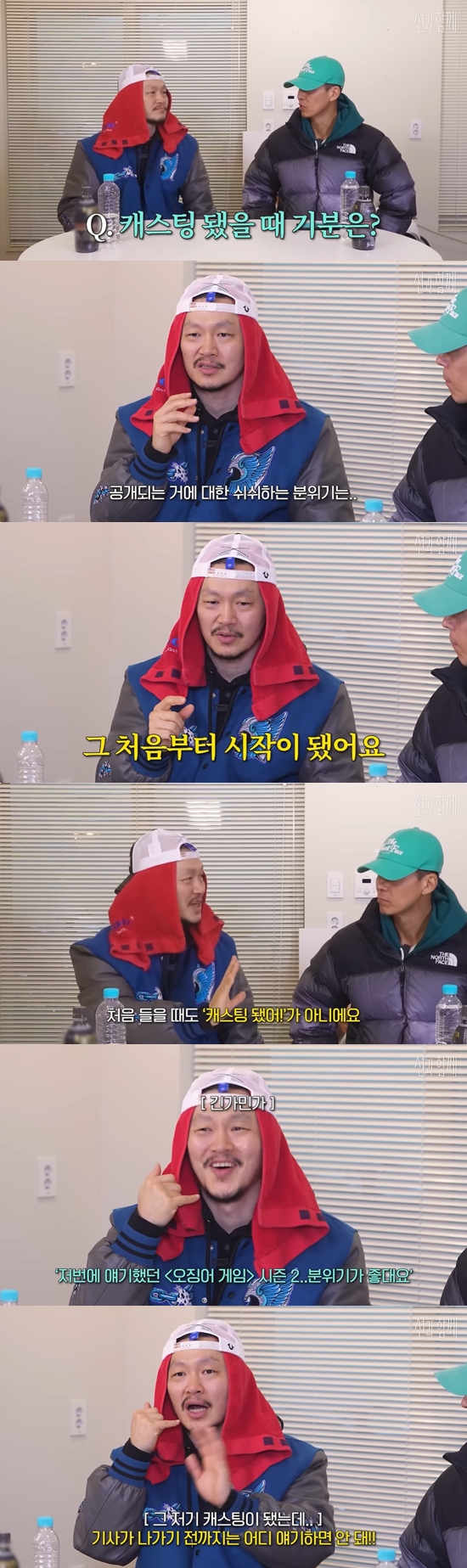 그는 "그러다 한참 있다가 '저번에 얘기했던 '오겜2' 분위기가 좋다'고 한다. 그러니까 처음부터 눌러놓은 분위기가 이미 시작된 것"이라며 "'캐스팅이 됐는데, 기사 나가기 전까지는 얘기하면 안 된대' 하더라"며 "그런 기분을 느낄 새보다 입조심을 해야겠다 생각이 컸다. 그래서 가족들에게도 얘기를 못 했다"고 털어놨다.