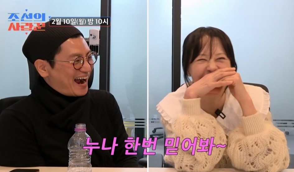 6살 연하 건축가 김태현과 '조선의 사랑꾼'에 '예비부부'로 찾아온 서정희는 "누나 한번 믿어봐~"라며 농담으로 긴장을 덜어낸다. 이어 그는 "저는 여태 남자랑 대화하면서 가슴이 뛴 적도, 관심도 없었다"라고 털어놓는다.