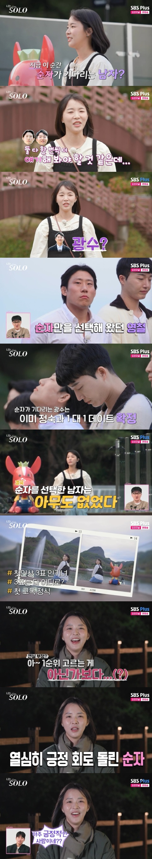 순자는 "아무도 안 왔다. 그래도 둘이 올 줄 알았는데 조금 당황했는데 웃고 있었다. '아 1순위 고르는 게 아닌가 보다, 2순위 데이트인가 보다. 다른 조건의 데이트겠지' 하고 말았던 것 같다"라며 웃었다.