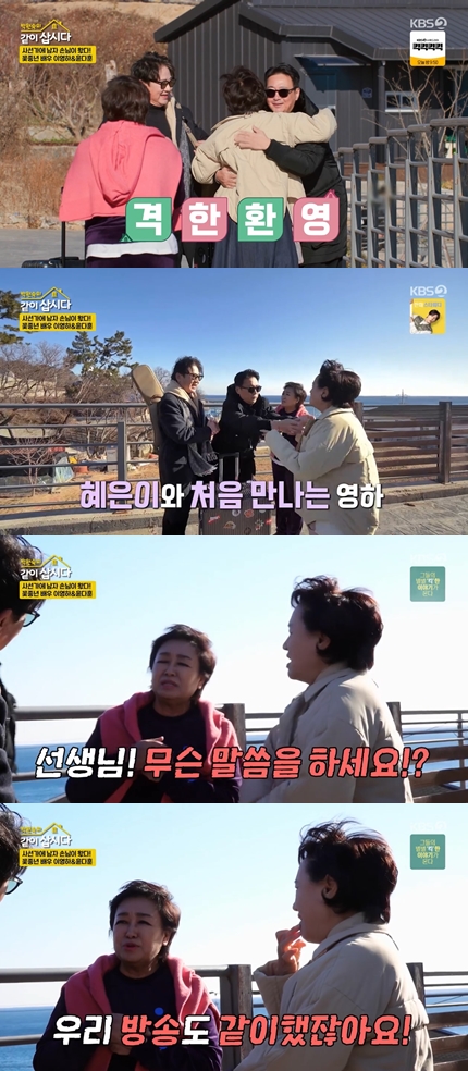 이에 혜은이는 "선생님 무슨 소리냐. 우리 방송 같이하지 않았냐"라고 버럭하며 웃음을 안겼다. 이영하는 "제가 하도 프로그램을 많이 해서"라며 머쓱해했다.