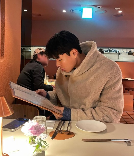 사진 속 송범근은 분위기 좋은 레스토랑에서 여유로운 시간을 보내고 있다. 무스탕 재킷으로 멋을 낸 송범근은 장난기 가득한 표정을 지으며 훈훈한 비주얼을 드러냈다.