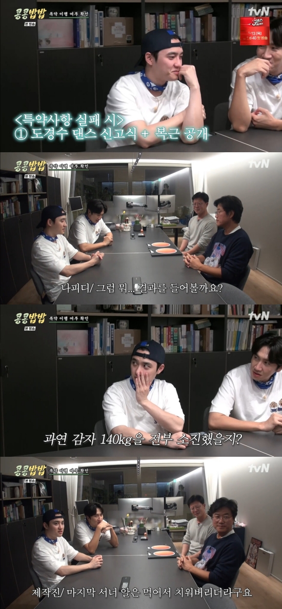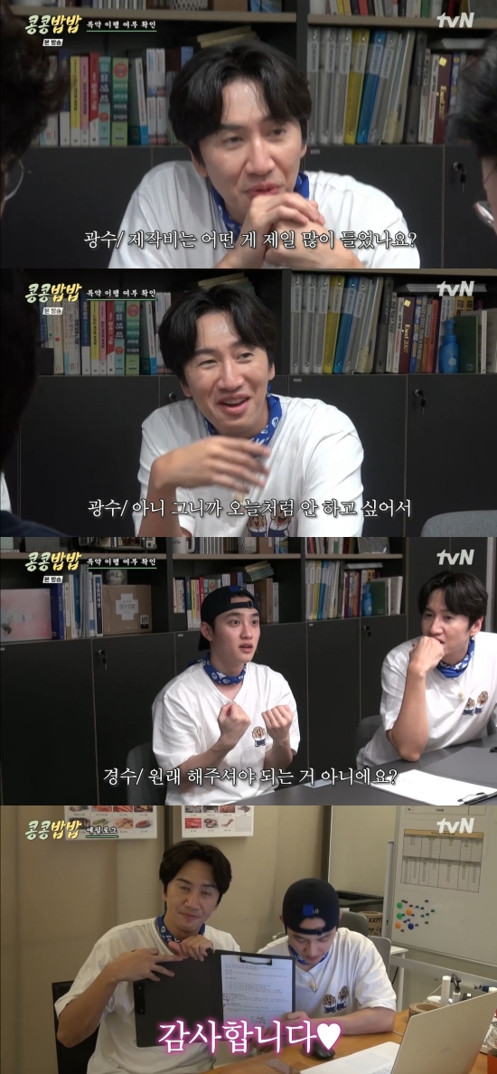 6일 방송된 tvN '콩 심은 데 콩 나고 밥 먹으면 밥심 난다'(이하 '콩콩밥밥')에서는 이광수와 도경수가 구내식당 운영을 마무리한 장면이 전파를 탔다.