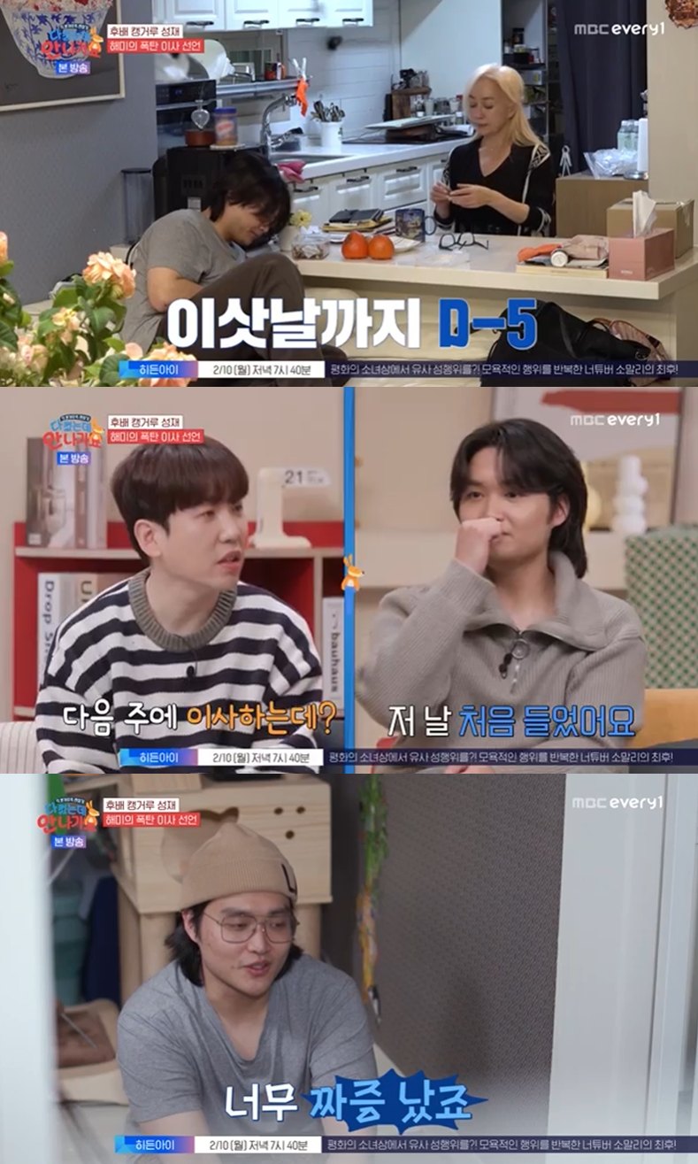 이에 황성재는 답답해하며 "뭔 소리하는 거야. 다음 주에 이사간다며"라고 말했고, 패널들은 시트콤 같다며 웃었다.