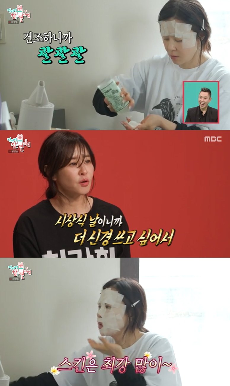 한편 최강희는 시상식 맞이 스킨케어 과정을 공개하며 피부 관리 꿀팁을 전하기도 했다. 그는 토너를 화장솜에 쏟아부어 출연진들을 놀라게 했는데, 그러면서 "스킨 저렴한 걸 화장솜에 잔뜩 묻혀서 올려두고"라면서 "시상식이라 오늘은 제가 좋아하는 스킨 올려서 발랐다"고 말했다.
