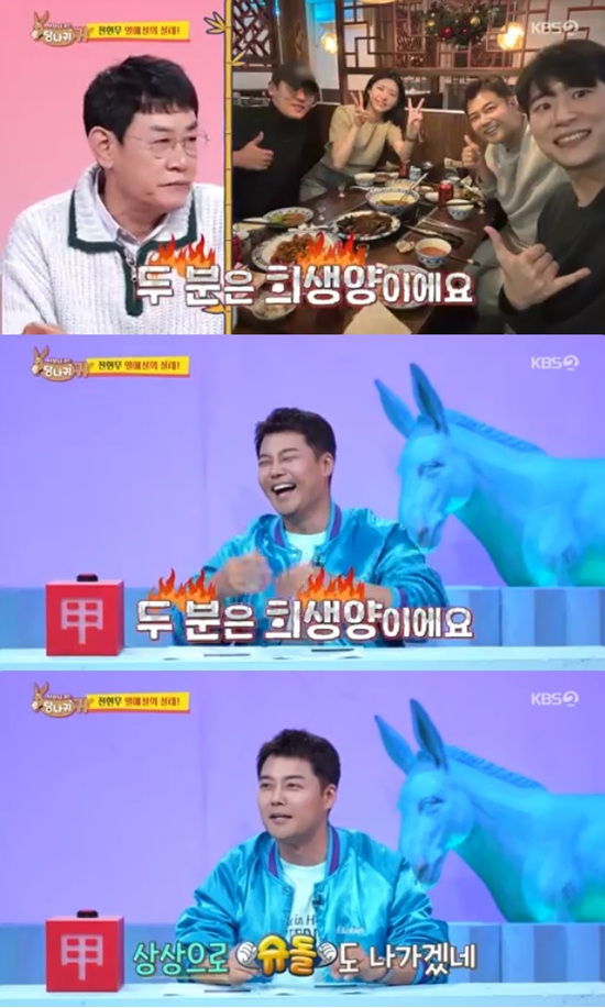 전현무는 당시 사진이 공개되자 웃음을 터트렸다. 김숙은 "주연 씨 먹이려고 간 거네"라고 말했다.