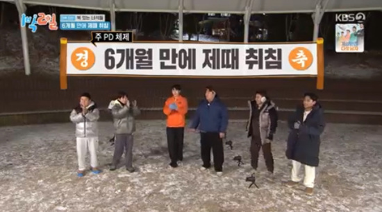 주종현PD는 2명만 실내취침을 하기에는 아쉬우니까 1명 더 구제하기 위한 '거꾸로 몸으로 말해요'를 진행하겠다고 말했다.