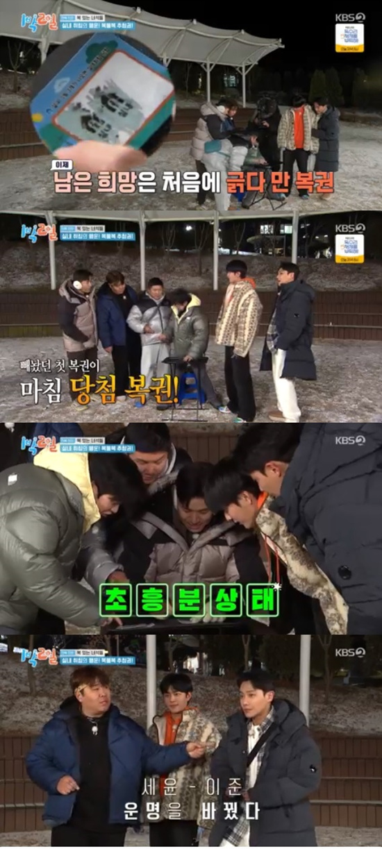 이준과 문세윤은 서로 복권을 바꾸며 운명을 바꿨는데 이준이 먼저 야외취침으로 결정났다.