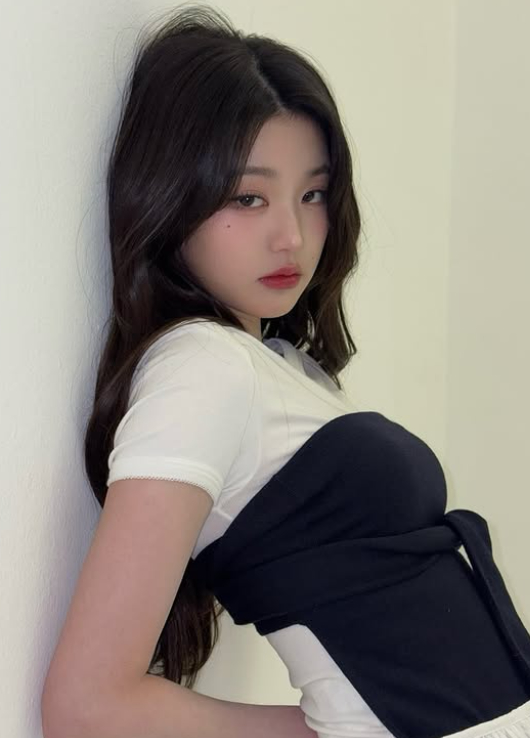 또 다른 사진에서 장원영은 매혹적인 매력을 발산하며 팔은 뒷짐지고 벽에 기댄 채 카메라를 응시하는 모습을 보였다. 그는 흰 티셔츠와 검은색 니트탑을 레이어드한 매치한 깔끔한 룩으로 시선을 사로잡았다.