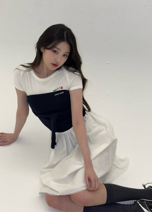 공개된 사진에서 장원영은 매혹적인 매력을 뽐냈다. 그는 팔은 뒷짐지고 벽에 기댄 자세로 카메라를 응시했다. 흰 티셔츠에 검은색의 레이어드 탑으로 매치한 깔끔한 룩으로 눈길을 사로잡았다.