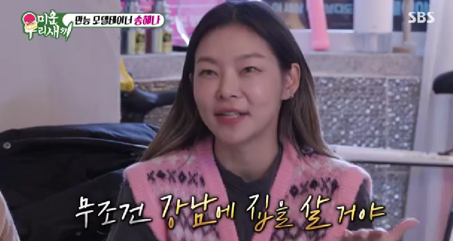 스무 살때부터 일을 시작했다는 송해나는 "딱 스무 살 때부터 용돈이 끊겼다. 차도 서른 넘어서 샀다. 무조건 강남에 집을 사는 게 꿈이었다. 돈 버는 거 다 모았다. 대출 꼈는데 다 갚았다"고 뿌듯한 미소를 지었다.