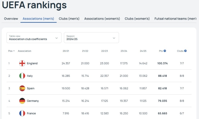 프리미어리그는 명실상부 유럽 최고의 리그다. 유럽축구연맹(UEFA)에 따르면 리그 1위는 잉글랜드(10만 374점)다. PSG가 소속된 프랑스 리그는 5위(6만 5665점)이다.