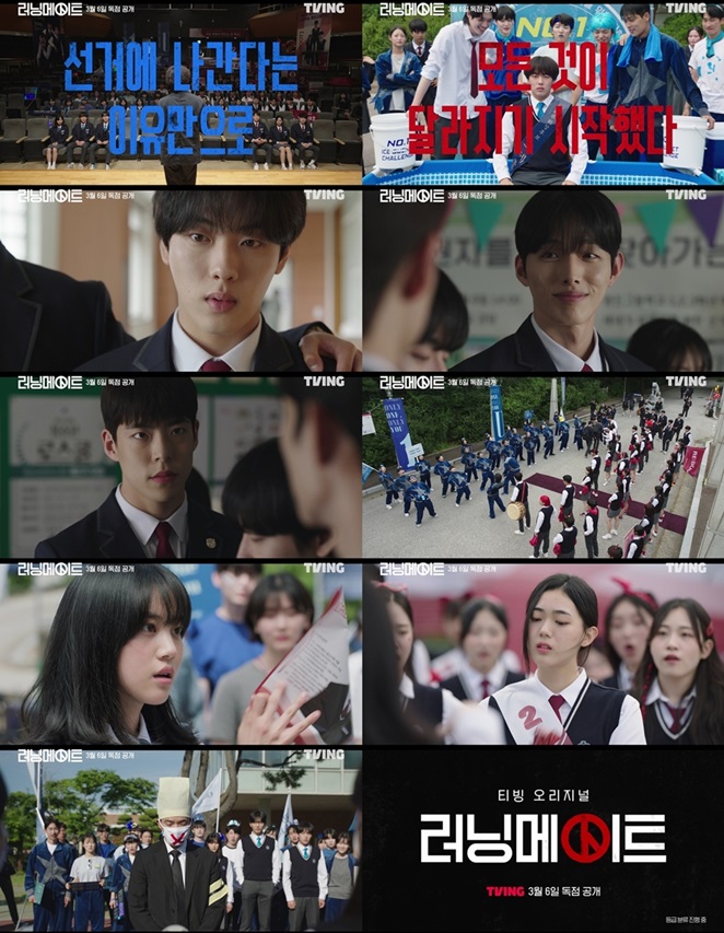 티빙 오리지널 '러닝메이트'(연출·극본 한진원) 측은 10일 새파란 아이들의 새빨간 정치질이 호기심을 자극하는 출사표 포스터와 티저 예고편을 공개했다.