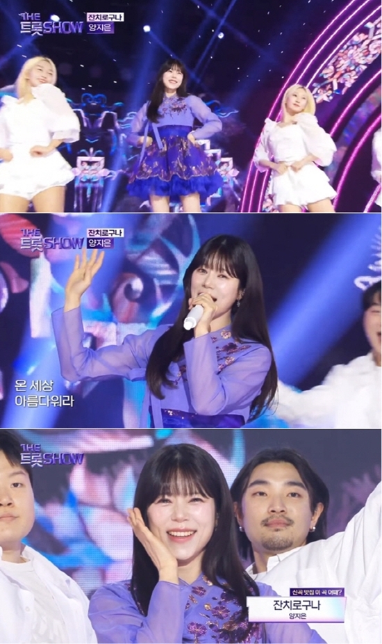 지난 10일 방송된 SBS M '더 트롯쇼'에서는 양지은이 출연해 중독성 강한 '잔치로구나' 퍼포먼스로 현장과 안방 시청자들을 사로잡았다.