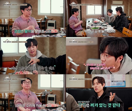 이에 이상엽이 "아내가 요즘 요리 재미에 빠져 나는 요리를 안 하게 된다"고 밝히자 임원희는 "부럽다"는 외마디 탄식과 함께 "아내가 요리 해주는 것 자체가 부럽다. 너무 부러워 말까지 더듬게 된다"며 진행에 어려움을 나타내 현장을 웃음 바다로 만든다.
