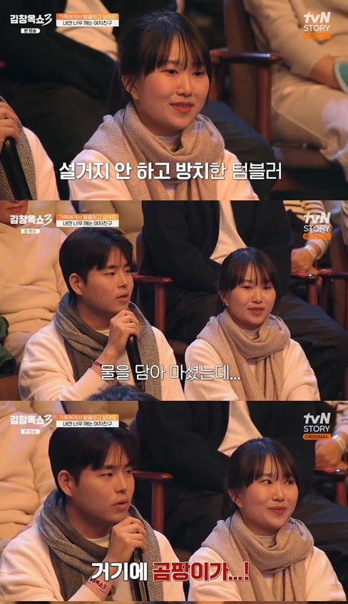 그는 "텀블러에 곰팡이가 피어 있어가지고 여자친구가 식중독 걸려서 응급실에 갔었다더라"라며 모두의 충격을 자아냈다.