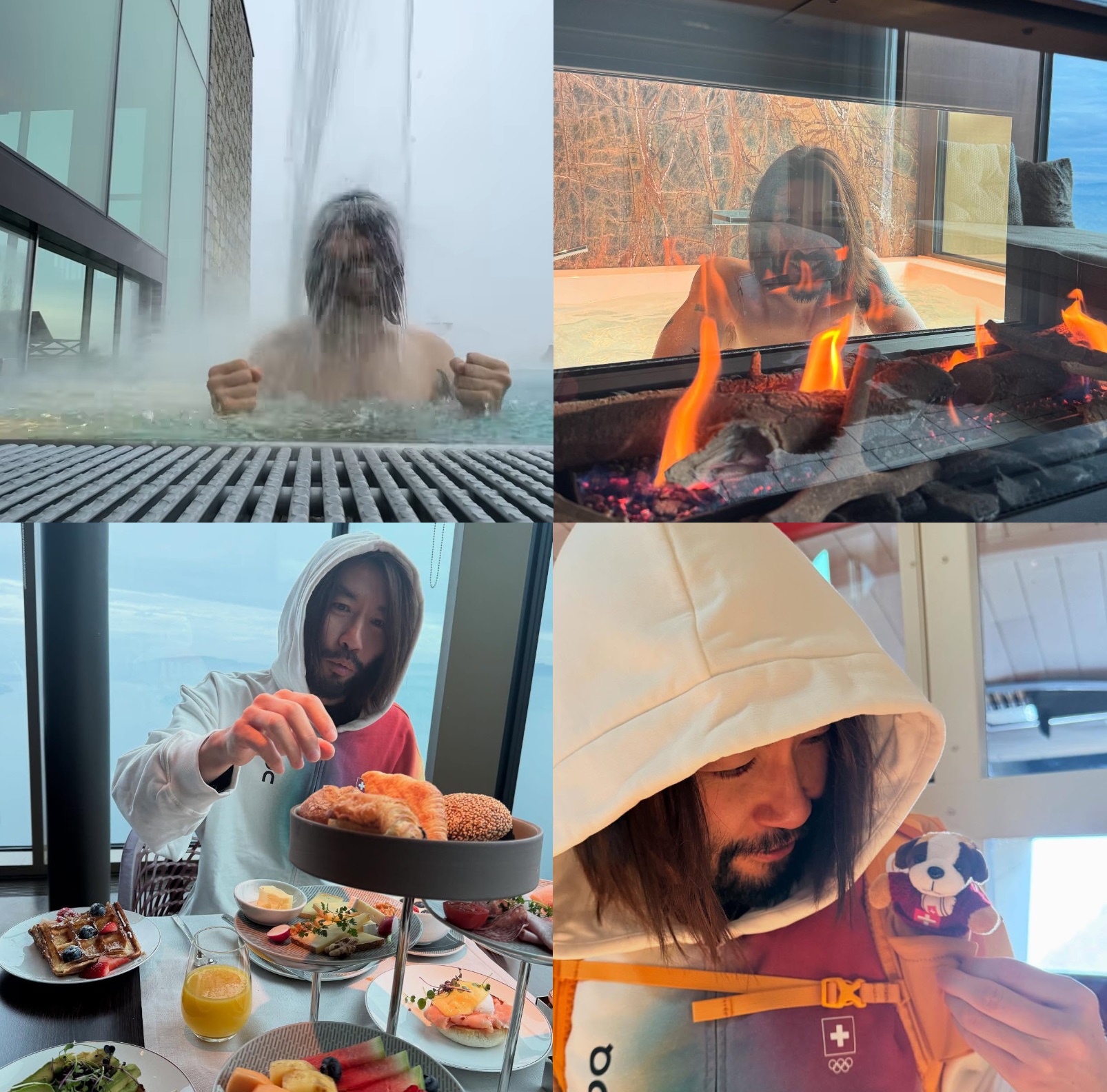 노홍철은 야외 수영장에서 수영을 즐기는 모습과 식당에 방문한 모습, 불멍 중인 모습을 함께 공개했다.