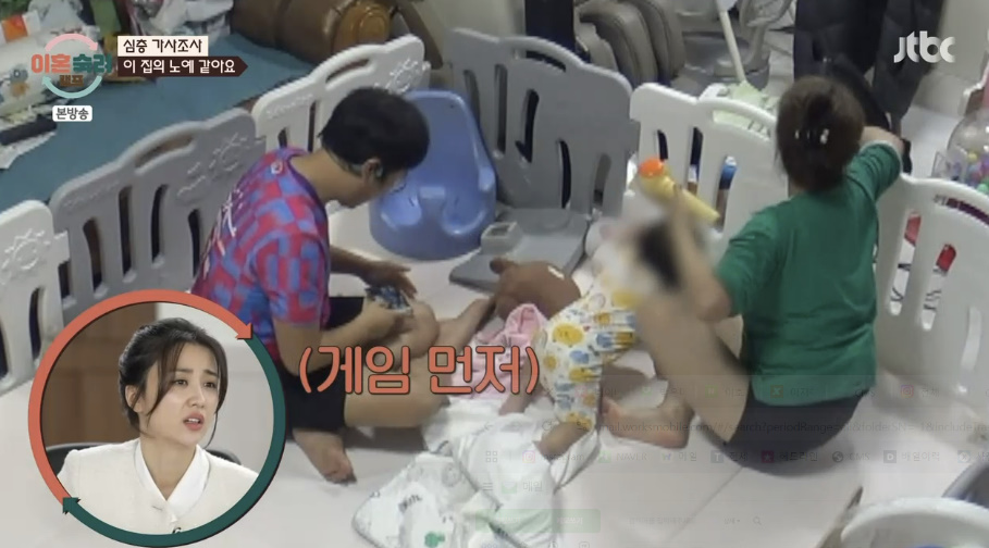 그러나 독박육아로 현재는 심신이 지친 상태. 남편은 아내가 아이를 봐달라는 요청에 "아 좀 들어가게 냅둬. 다 열어놓고 어떻게 하라고"라며 역정내곤 "아이C"라고 또 욕설했다.