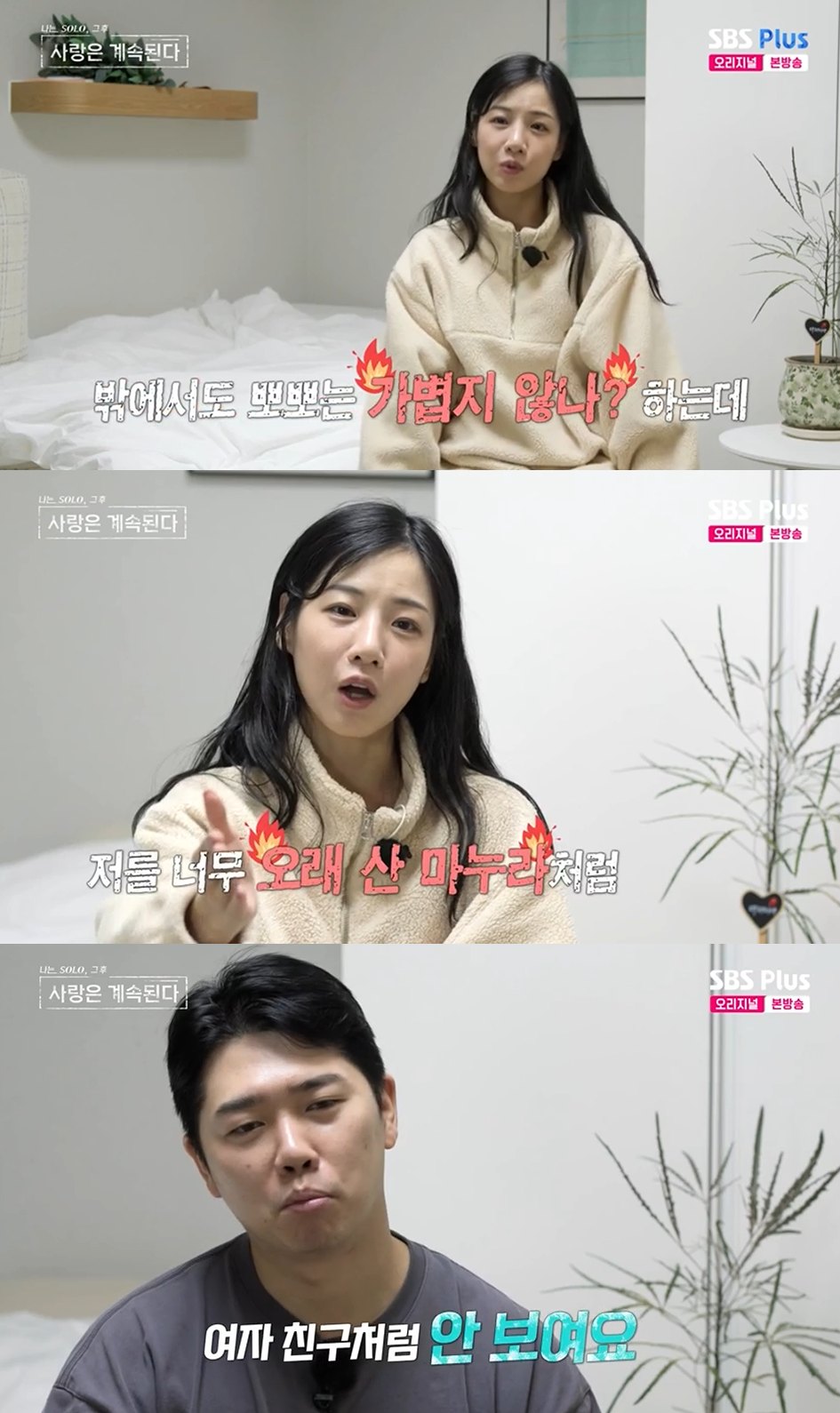 (엑스포츠뉴스 황혜윤 기자) 22기 옥순이 22기 경수가 자신을 오래 함께 산 마누라처럼 대한다고 토로했다.