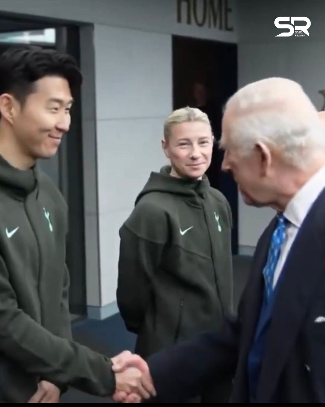 구단이 공개한 영상에서. 손흥민은 찰스 3세와 첫인사를 나눴다. 찰스 3세는 "여기서 바네시랑 같은 시간 동안 뛰었나"라고 물었고, 손흥민은 "나는 10년간 여기서 뛰었다"라고 말했고 "그러면 한국에서 많이 배웠겠네?"라고 찰스가 되묻자, "그렇다"라고 손흥민이 다시 답했다.