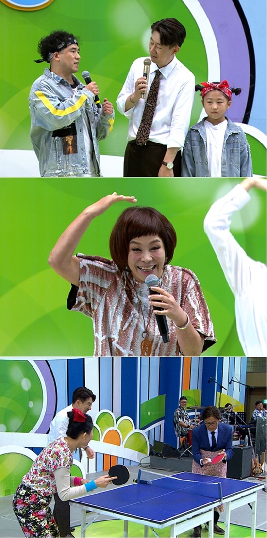 그런가 하면 이날 방송에서는 MC 남희석이 무대 위 탁구대를 사이에 두고 꽃무늬 티셔츠와 꽃무늬 일바지를 입은 정겨운 차림새의 참가자들과 탁구 대결을 펼치는 흥미로운 볼거리를 선보인다.