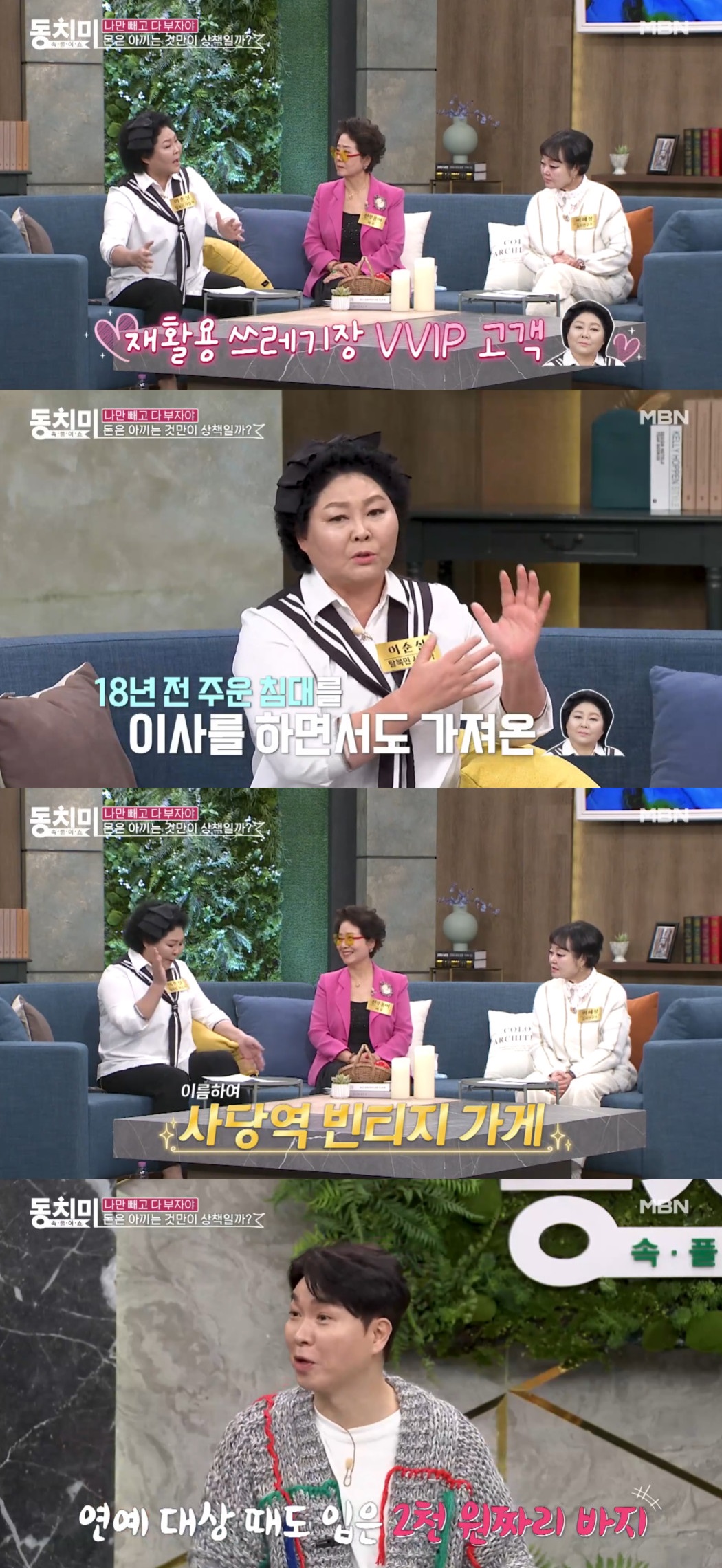 "백화점이 우리 아파트에 있다"는 이순실은 "재활용 쓰레기가 있다. 여기에 드라이기 침대도 있다. 전 임대주택에서 돈 벌어서 집 사서 이사갈 때도 18년 전 주워온 침대를 가지고 들어갔다. 주워도 새 거다"라고 이야기했다.