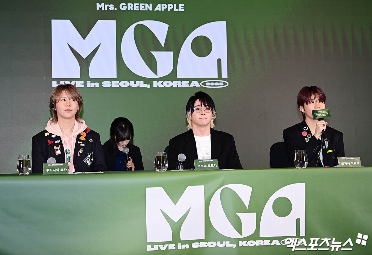(엑스포츠뉴스 동대문, 김예나 기자) 일본 밴드 미세스 그린 애플(Mrs GREEN APPLE)이 10주년 만에 열린 첫 내한 공연을 계기로 한국 팬들과 보다 가까이 소통하겠다는 각오를 밝혔다.