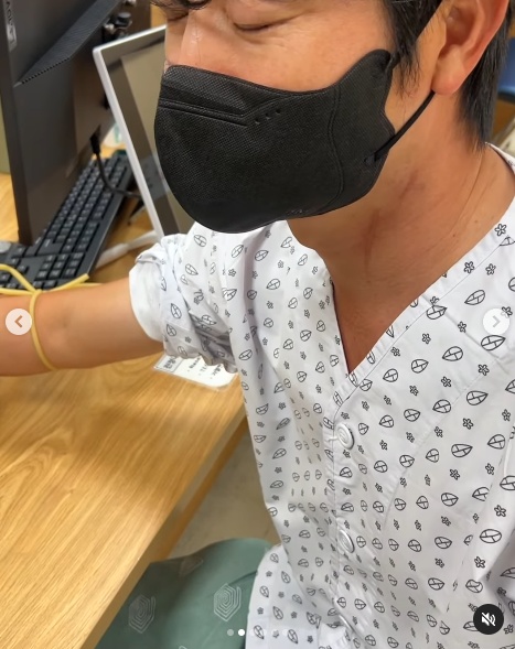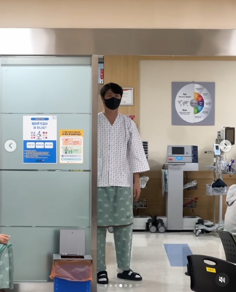 사진 속 유상무는 병원에서 검사를 받고 있다. 아내 김연지와 다정한 모습을 보여주기도 했다.