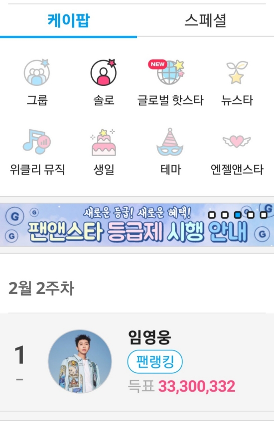 최근 '팬앤스타'에 따르면, 임영웅은 2월 2주 차 솔로가수 인기 랭킹 투표에서 1위에 등극했다.