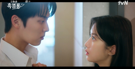 17일 첫 방송된 tvN 새 월화드라마 '그놈은 흑염룡' 1회에서는 반주연(최현욱 분)이 학창 시절 첫사랑 백수정(문가영)과 성인이 되어 재회한 모습이 그려졌다.