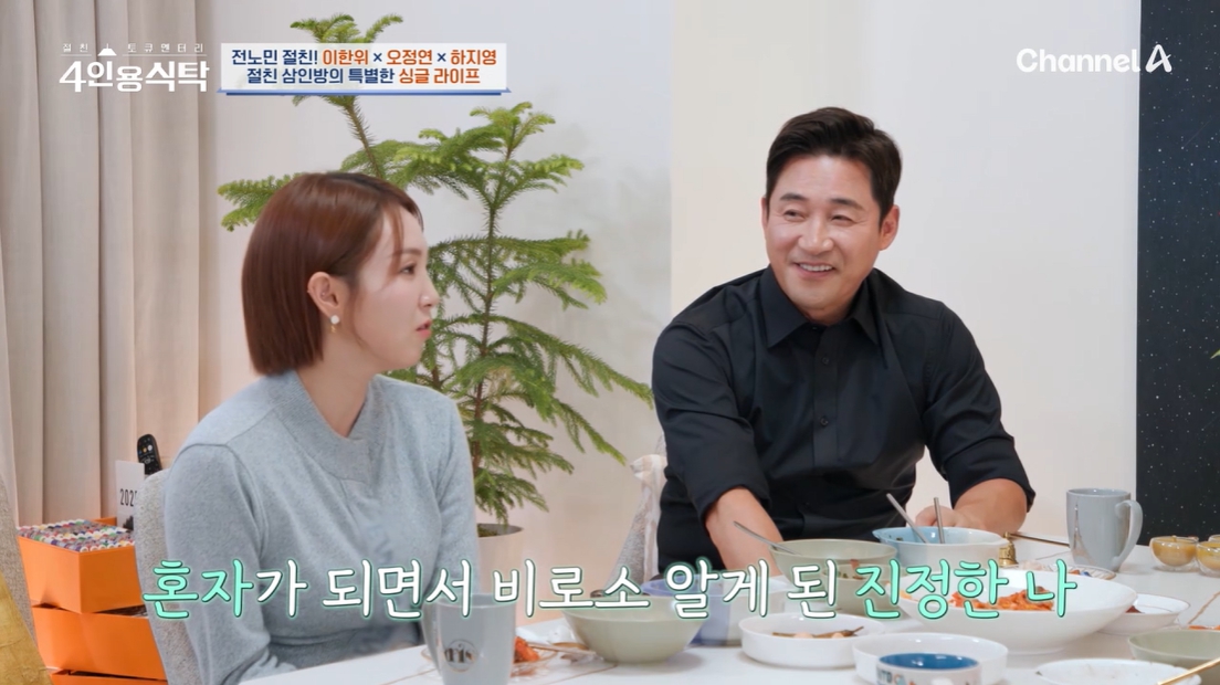 지난 17일 방송된 채널A '절친 토큐멘터리 4인용 식탁'에서는 배우 전노민이 절친 하지영, 이한위, 오정연을 초대해 이야기를 나눴다.