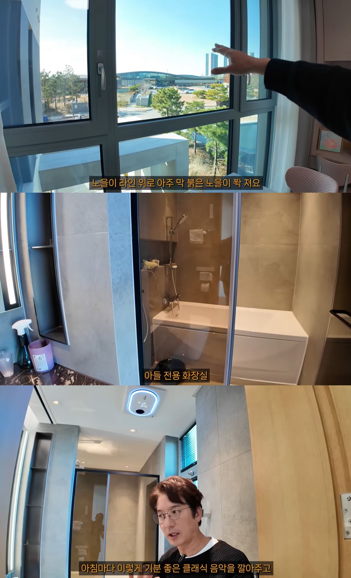더불어 아들 방 화장실에서는 클래식 음악이 흘러나와 눈길을 끌었다. 이에 대해선 "조명 자체에 많은 기능이 들어가 있다. 음악도 나오고 아침에 모닝콜도 해준다. 아침마다 클래식 음악 깔아준다"고 전해 눈길을 끌었다.