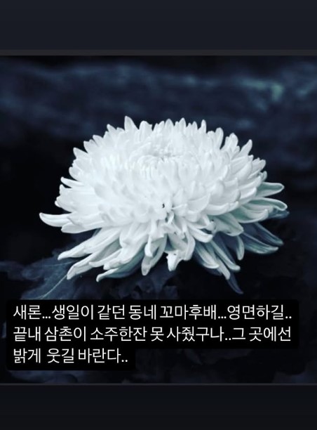 18일 이종혁은 개인 계정에 "새론... 생일이 같던 동네 꼬마후배... 영면하길... 끝내 삼촌이 소주 한 잔 못 사줬구나... 그 곳에선 밝게 웃길 바란다"라며 국화꽃 사진과 함께 김새론을 추모했다.