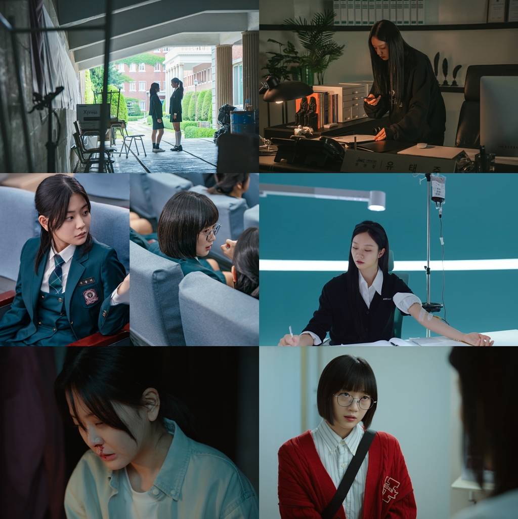 그런가 하면 이번 회차에서는 중간고사를 앞둔 채화여고 3학년 1등 후보 제이, 슬기, 경이의 공부법도 공개된다. 검붉은 피를 수혈받으며 공부하는 제이, 밤늦게까지 공부하다가 코피를 흘리는 슬기, 병원에서 의사 선생님에게 상담을 받는 경이까지. 저마다 다른 방법으로 중간고사를 준비하는 세 사람의 치열한 중간고사 준비기가 기대되고 기다려진다.