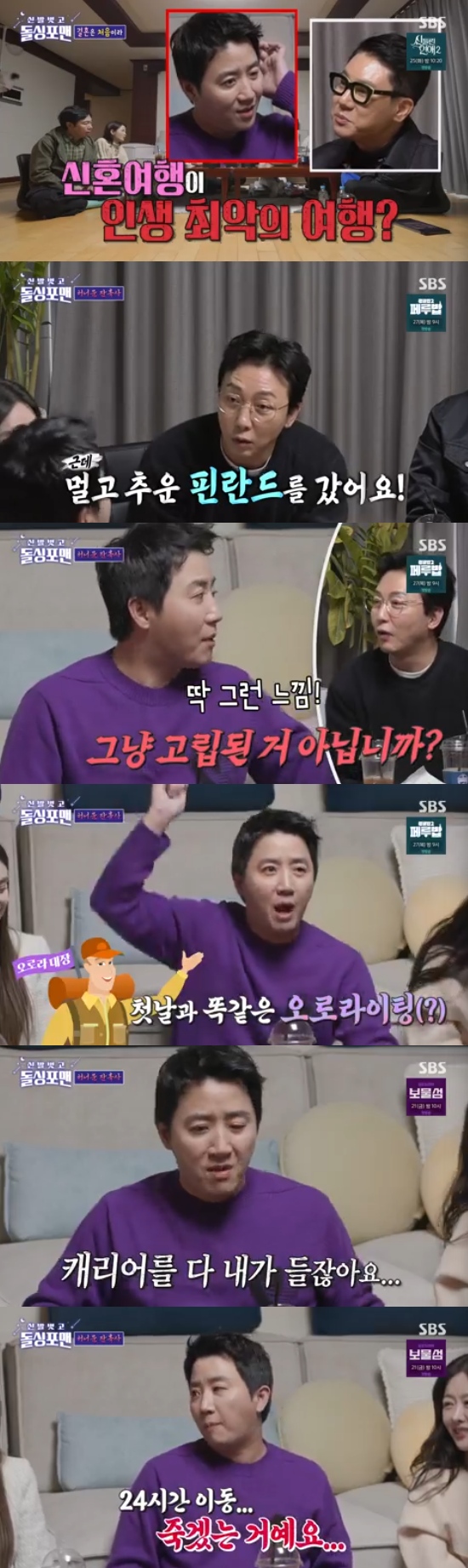 또 이상민은 "인생 최악의 여행이 신혼여행이었다고?"라고 물었고, 홍진호는 "최악은 아니고, 좋은 추억인데, 많이 힘들었다. 제가 싫어하는 여행이 장거리와 추운 나라를 가는건데, 핀란드가 딱 그랬다"고 회상했다.