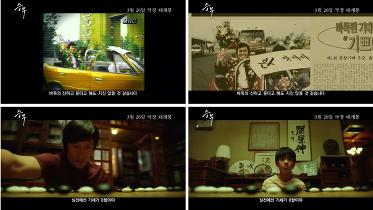 이병헌과 함께 고창석, 현봉식, 문정희, 김강훈까지 연기파 배우들이 예고편에 등장해 영화의 만듦새를 보장한다. 세계 프로바둑 선수권대회 결승에서 우승하며 전국민적 영웅으로 인생 최고의 위치에 서게 된 조훈현(이병헌)이 천재적 감각을 지닌 바둑 신동 이창호(김강훈)를 제자로 받아들이는 과정부터 이후 전설의 라이벌이 된 두 사람의 치열한 대결까지 긴장감 넘치는 전개가 펼쳐진다.