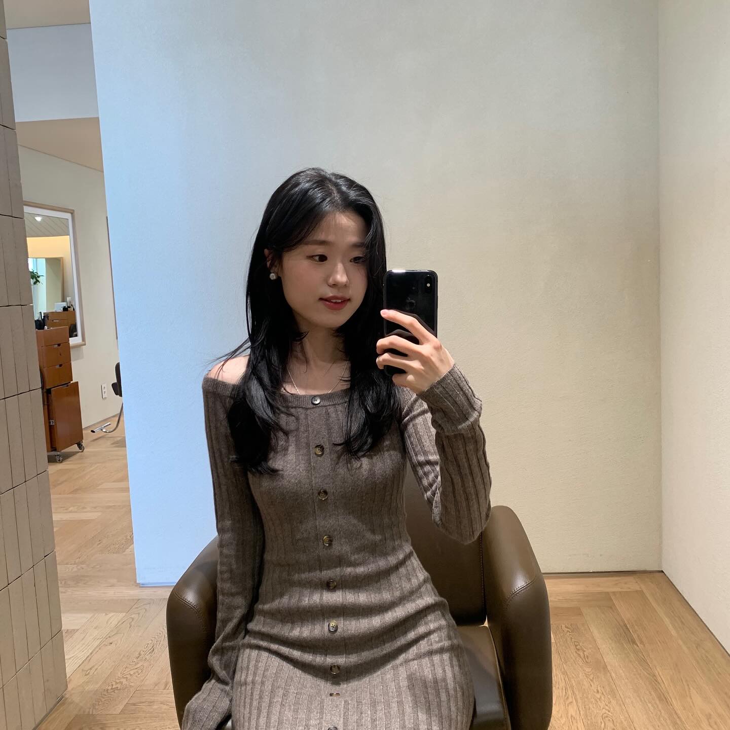 사진 속에는 메이크업을 받고 환하게 미소 짓는 현숙의 모습이 담겨 있다. 니트 원피스로 드러난 슬림한 몸매가 시선을 사로잡는다.