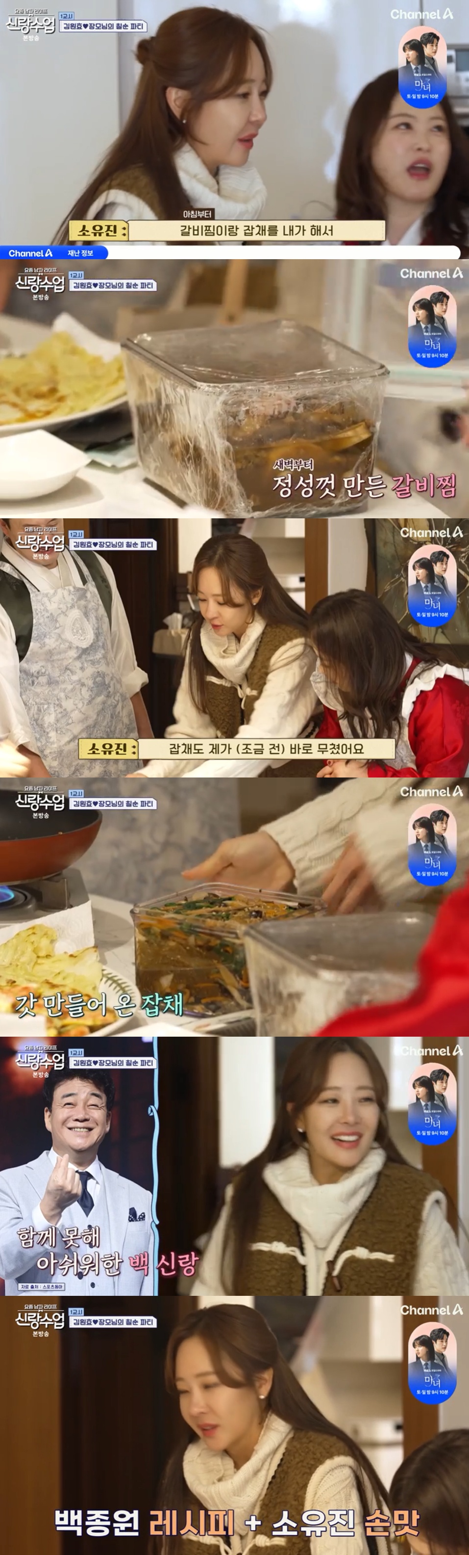 소유진이 만든 갈비찜을 먹은 심진화의 어머니는 "맛있다"며 칭찬을 아끼지 않았고, 심진화 역시 젓가락을 쉬지 않고 계속 먹으며 맛에 만족감을 드러냈다.