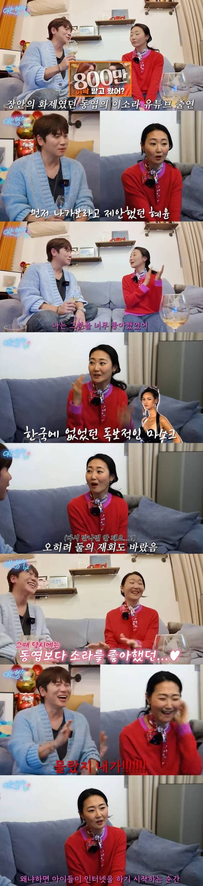 선PD는 "내가 나가라고 했다. 왜냐면 너무 궁금한 거다. 솔직히 말해서 우리 남편을 알기 전부터 나는 그분을 너무 좋아했다. 너무 멋진 여자라고 생각했다"며 "내가 고등학생 때 슈퍼모델이 됐는데 너무 멋있는 거다. 한국에 없는 마스크 있지 않냐. 신입사원 때 남편 처음 알 때도 다시 만나면 안 되냐고, 두 분 너무 잘 어울리셨는데 너무 아쉽다고 그랬다. 저는 사실은 그 사람을 그렇게 좋아하는 사람은 아니었다. 저는 사실 소라 언니 팬이었지 그분의 팬은 아니었다"라며 솔직한 입담을 뽐냈다.