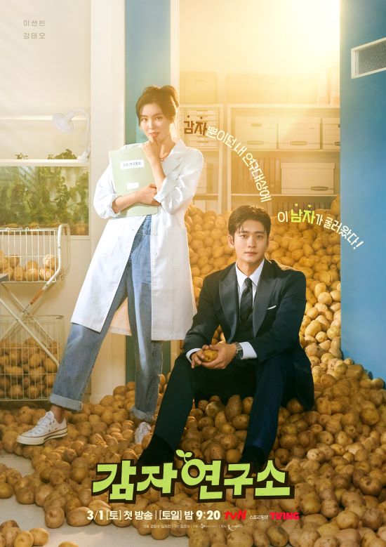 오는 3월 1일(토) 첫 방송되는 tvN 새 토일드라마 '감자연구소'는 감자가 인생의 전부인 미경(이선빈 분) 앞에 차가운 원칙주의자 백호(강태오)가 나타나 뱅글뱅글 회오리 감자처럼 휘몰아치는 힐링 코믹 로맨스를 그린다.