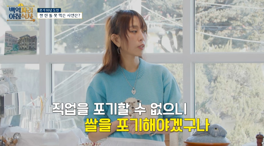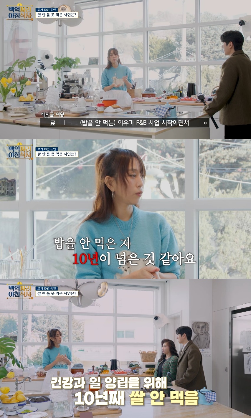 료는 "사업을 시작하면서 퀄리티 체크를 해야 해서, 저 같은 경우는 베이커리 브랜드가 여러 개고 지점별로 품질 관리를 다 한다"며 직업과 건강의 양립을 위해 쌀을 포기했다고 밝혔다.