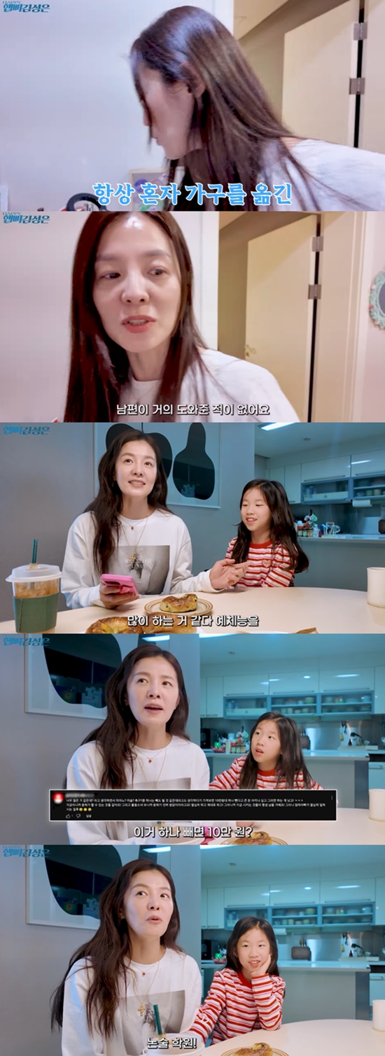윤하를 위한 방 옮기기 서프라이즈를 마친 김성은은 지난 영상에서 언급한 학원비에 대해 이야기했다. 김성은은 "학원비 정산하고 기사가 많이 났다. 너무 자극적이더라. 그냥 '두 아이 학원비 325만 원' 됐다'고 이야기했다.