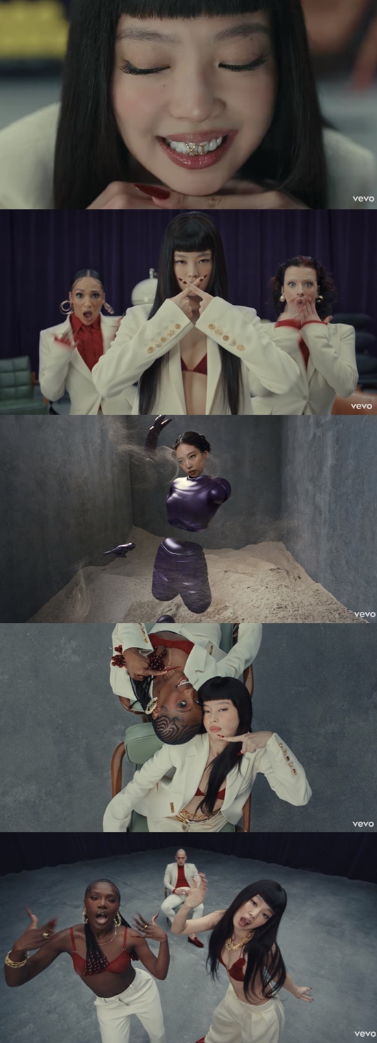 함께 공개된 뮤직비디오에는 황금색 투스젬을 한 제니의 얼굴이 클로즈업되며 시작부터 강렬한 인상을 남겼다. 이어 레드 브라톱과 화이트 수트를 맞춰 입은 제니가 귀에 강하게 꽂히는 트렌디한 비트 위 래핑을 펼쳐 눈과 귀를 사로잡았다