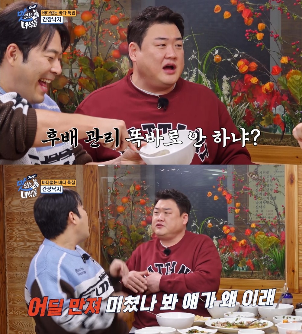 21일 방송되는 'THE 맛있는 녀석들'에서 김해준은 촬영 내내 김준현을 들었다 놨다 하며 웃음을 유발한다.