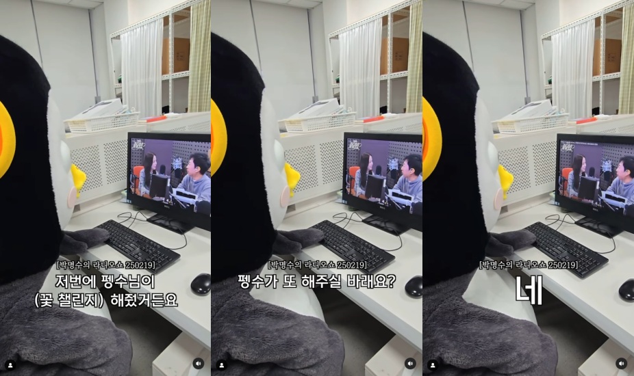 한편, 서울대학교병원 소아과 인턴 출신 펭수는 이전부터 다양한 아티스트와 챌린지 영상을 찍으며 화제를 모은 바 있다.