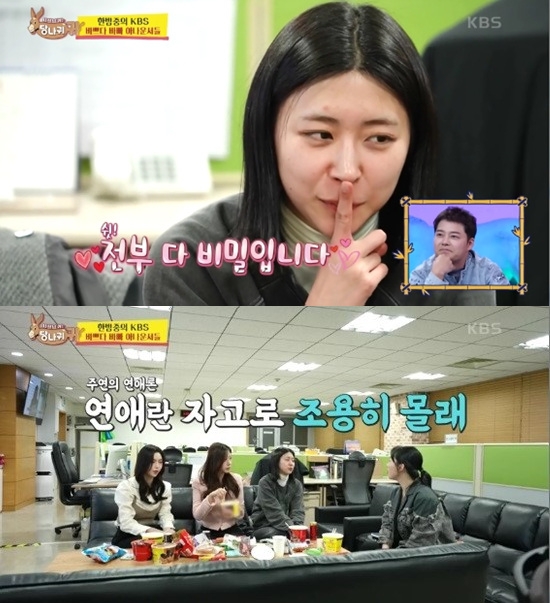 그러자 홍주연은 "부담스럽다. 연애는 조용히 몰래 하는 거다"라고 부담감을 토로했다.