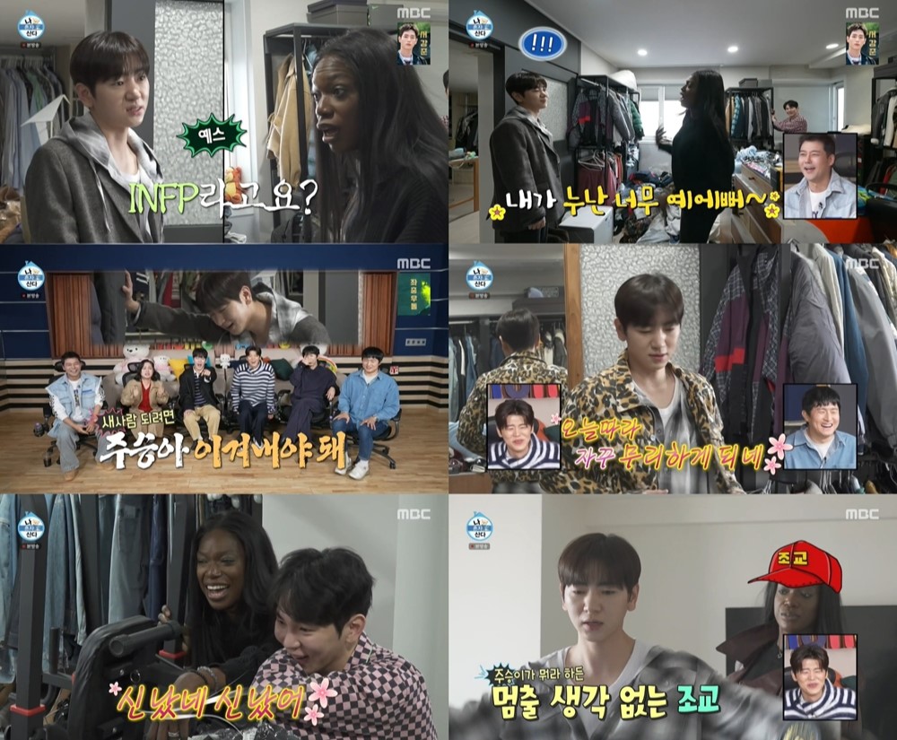 키의 집에서 성사된 카니와 이주승의 만남은 그야말로 시트콤 그 자체였다. ‘ENFP’ 카니 앞에서 텐션을 최대치로 끌어올린 ‘INFP’ 이주승, 그리고 그 모습을 흥미롭게 바라보는 키의 반응이 웃음을 자아냈다. 특히 갑자기 “누난 너무 예뻐~”라고 노래를 부르며 춤을 추는 카니를 보고 여지없이 무너지는 이주승과 “주승아! 이겨내!”라며 응원하는 무지개 회원들의 모습이 폭소를 자아냈다.