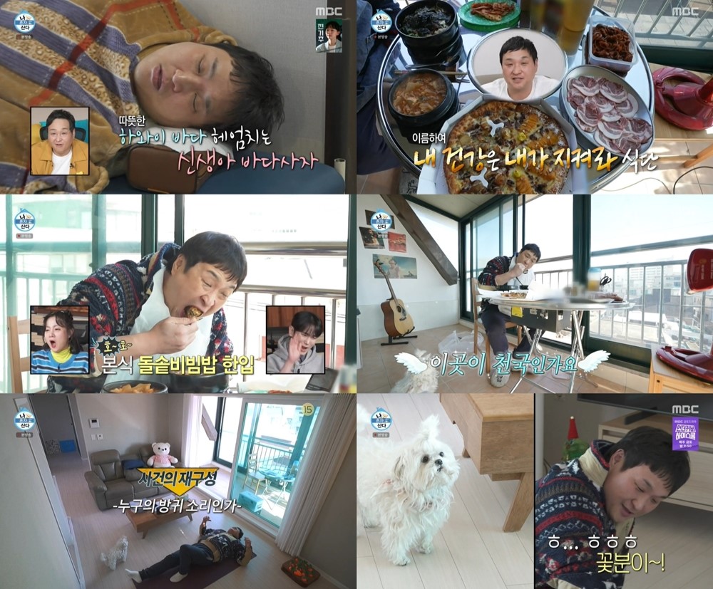 무사히 건강검진을 마치고 집으로 온 구성환은 ‘내 건강은 내가 지켜라’ 식단으로 만찬을 즐겼다. 피자를 시작으로 돌솥치즈비빔밥, 차돌청국장, 그리고 뽈항정살, 돼지껍데기까지. 구성환은 무려 26시간의 공복 끝에 마주한 음식 앞에서 행복한 미소를 지었다.