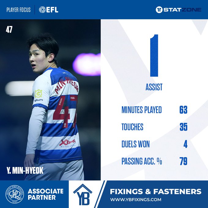 양민혁은 이날 경기에서 오른쪽 윙어로 선발 출전했다. 양민혁의 유럽 무대 첫 선발 출전이었다. 그는 이 경기에서 맹활약하면서 QPR은 승점 3점을 얻었다.